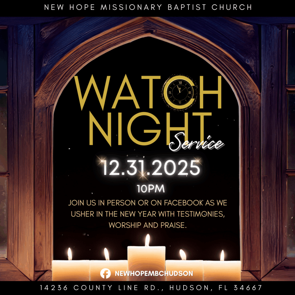 NEW HOPE MISSIONARY BAPTIST CHURCH | 14236 COUNTY LINE RD., HUDSON, FL 34667 | 727-856-8336